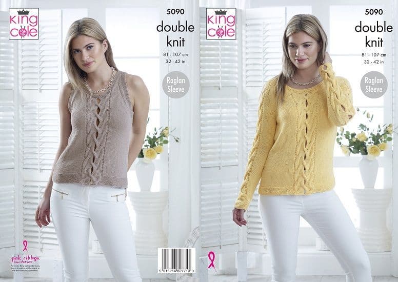 King Cole Bamboo Cotton Dk Top Sweater Knitting Pattern 5090